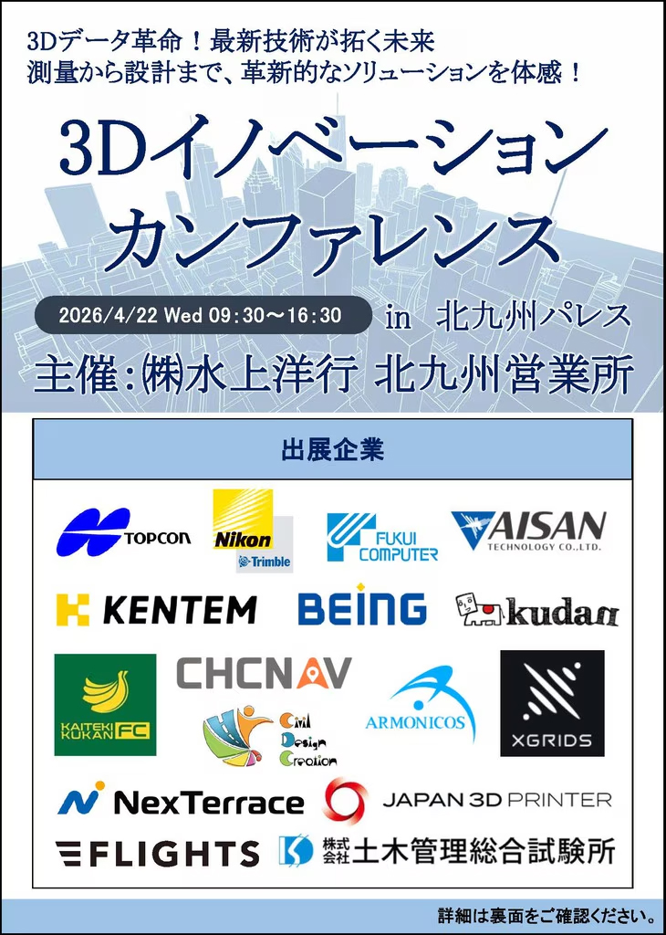 日付:2026年4月22日(水)9:30~16:30 会場:北九州パレス 2F第1研修室(北九州市小倉北区井堀5丁目1-3) 入場料:無料(ご来場には事前登録が必要です) 主催:株式会社水上洋行 北九州営業所 |