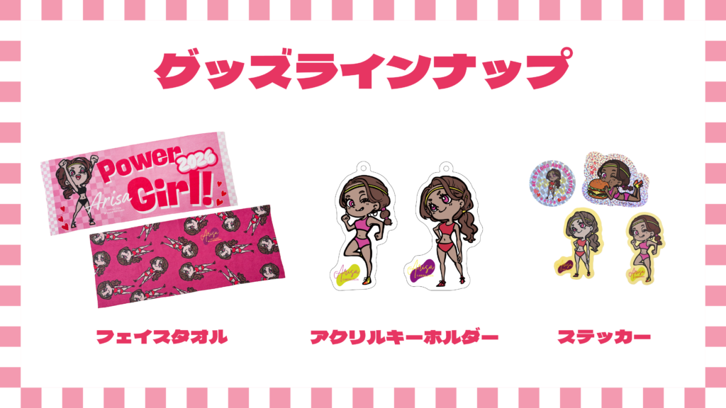 君嶋選手が監修したキャラクター「ミニアリ」のデザインを中心に、心が“ワクワク”、パワーが“みなぎる”ようなアイテムを用意。グッズにはそれぞれ、君嶋選手自身が考えた前向きになれる名前やメッセージが付けられています。