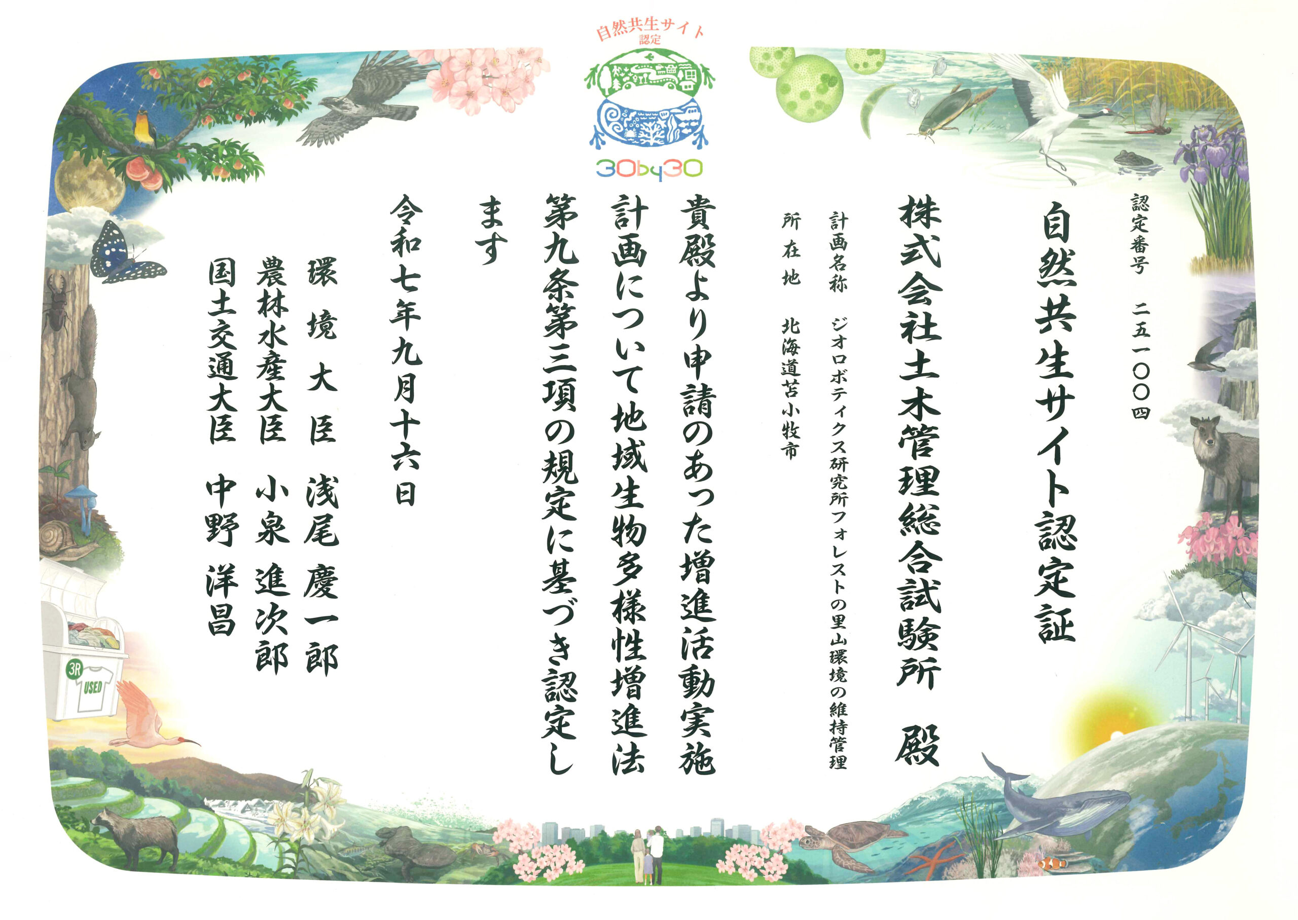 このたび当社が管理するジオロボティクス研究所フォレストが、環境省の「自然共生サイト」として認定されました。