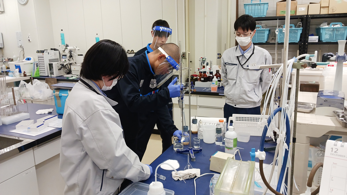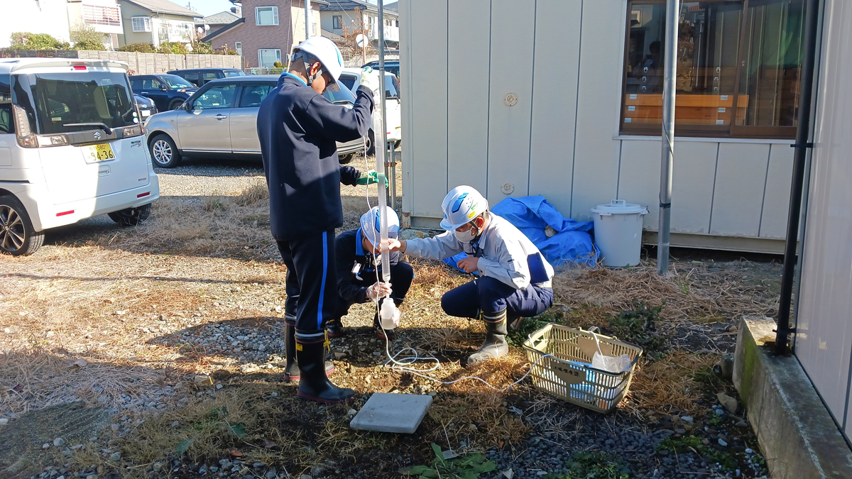 | インターンシップ 1日目(環境) | ・環境部の事業内容を学ぶ ・水文調査業務(井戸水、用水路)を体験 ・水文調査にて採取した水の酸素濃度分析業務を体験 |