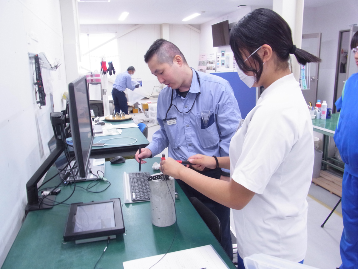 | 非破壊試験 | ・コンクリートと鉄の関係について学ぶ ・土木構造物の品質管理(衝撃弾性波試験)体験 ・耐震診断調査業務(圧縮強度試験、中性化試験、鉄筋探査など)体験 |